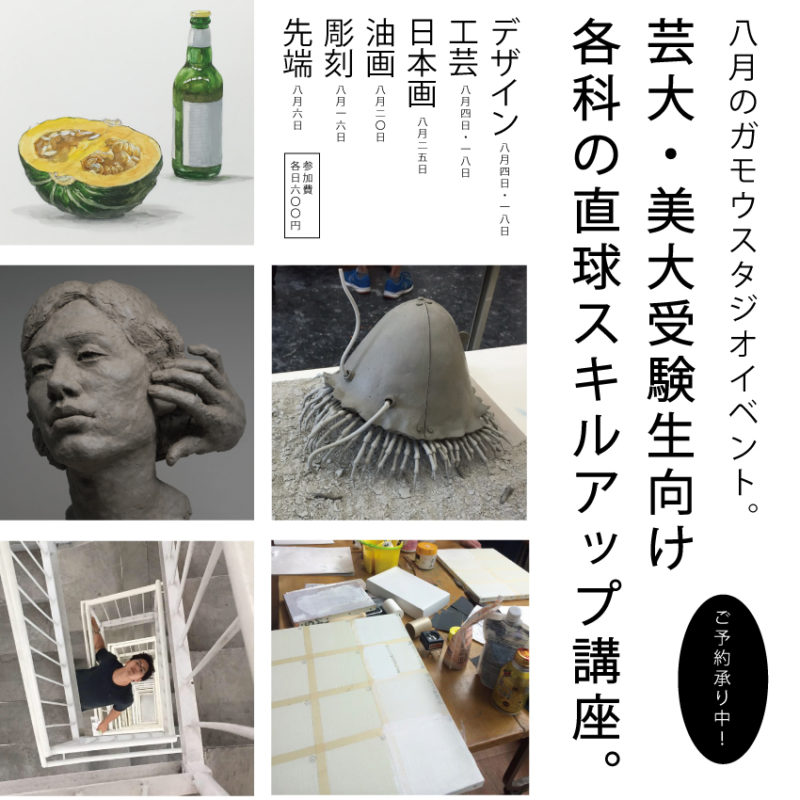 8月のガモウスタジオは芸大・美大受験生向け講座を各科で行います。